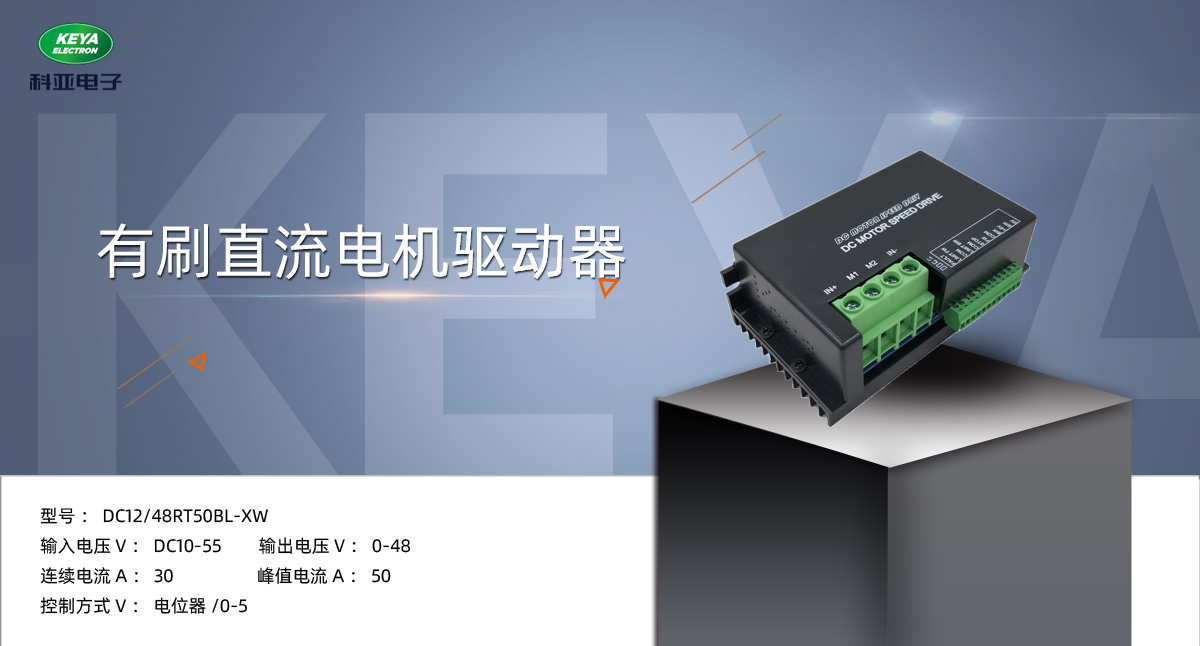 Keya - DC 48RT50BL-XW是一款智能型大功率直流马达驱动器。该驱动器使用高性能MCU,采用高级运动控制算法,应用于特殊功能要求的场合,可外部模拟量、脉宽控制和电位器调速,可设置软启和软停,可设置最大电流和马达扭矩,马达正向和反向可独立选择,马达正向、反向最大电流可独立设置,正向限位和反向限位可独立控制,驱动器设有故障报警输出端,可以更有效的保护整套设备的可靠以及安全,可以广泛的用于自动化控制行业。